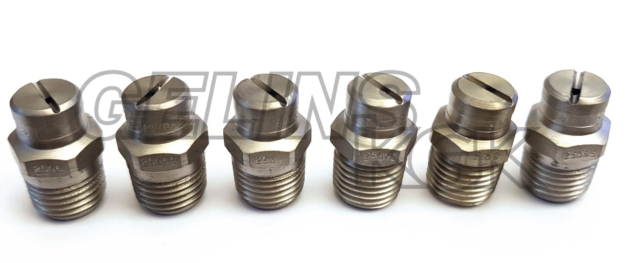 Stålmunstycke 1/4″ utv. gänga Spridning: 25-080 Max tryck 250 bar