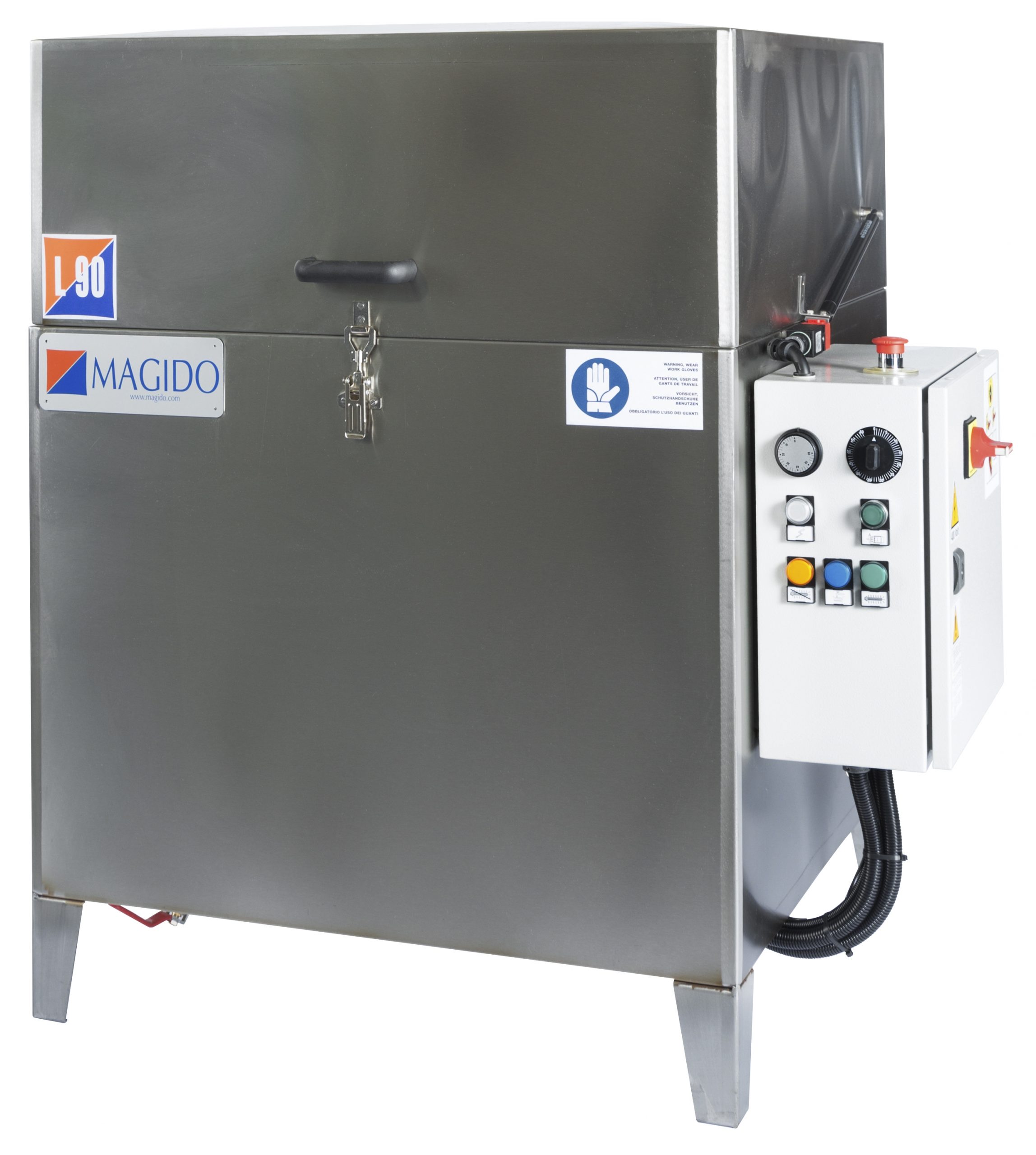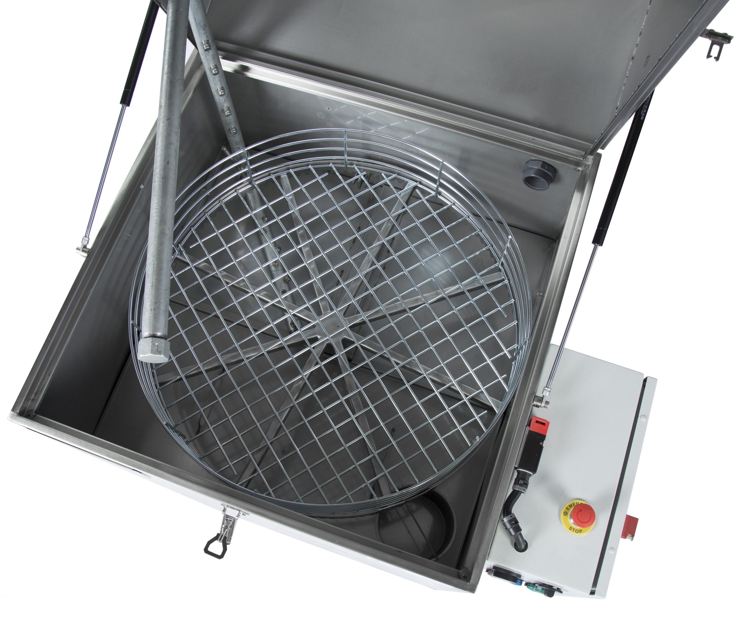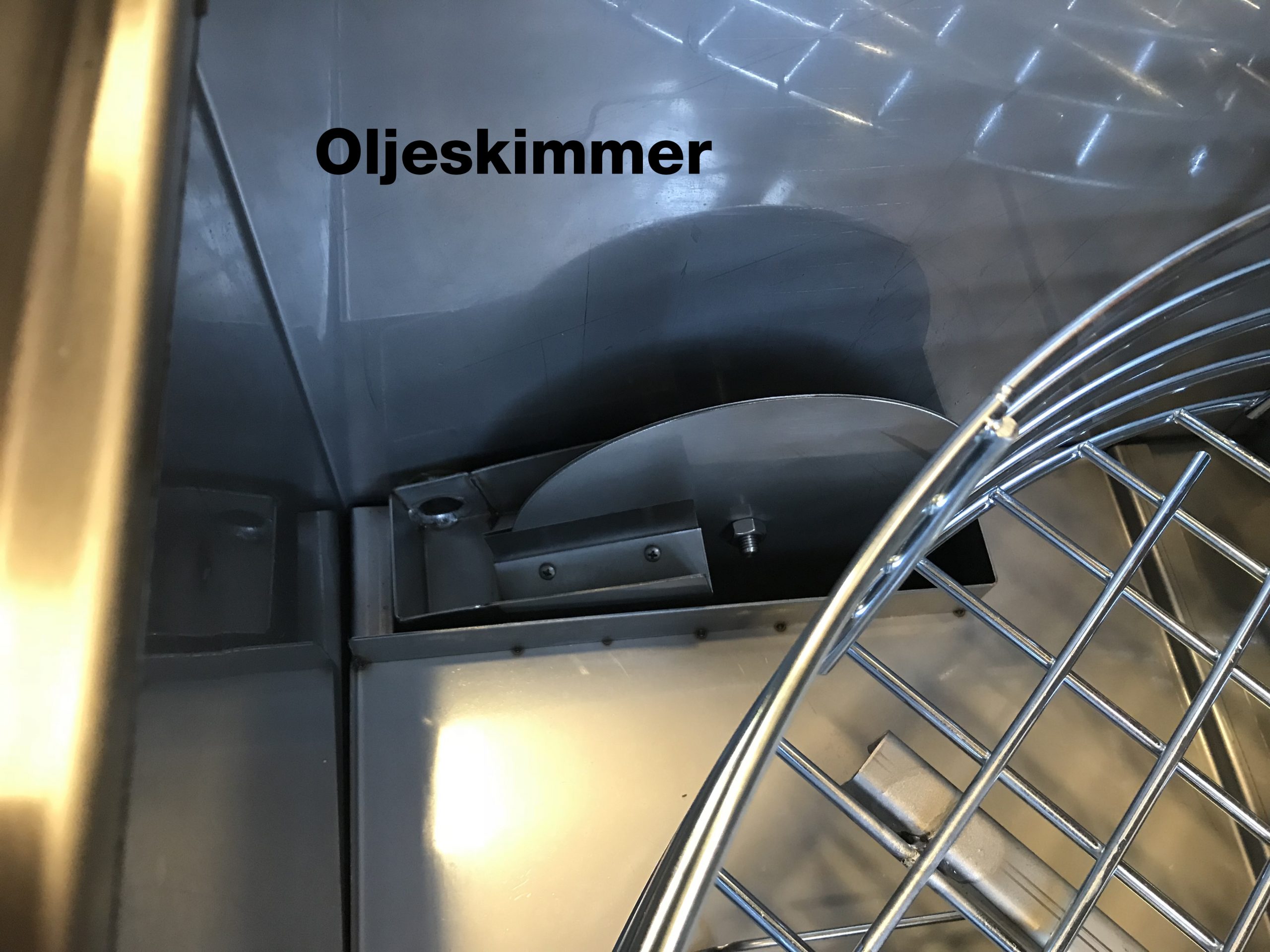 Automatiska smådelstvätt i rostfritt stål med värme. Spolröret med dysor är fast. Godskorgen roterar. Utrustad med oljeskimmer och är 3-fas.
